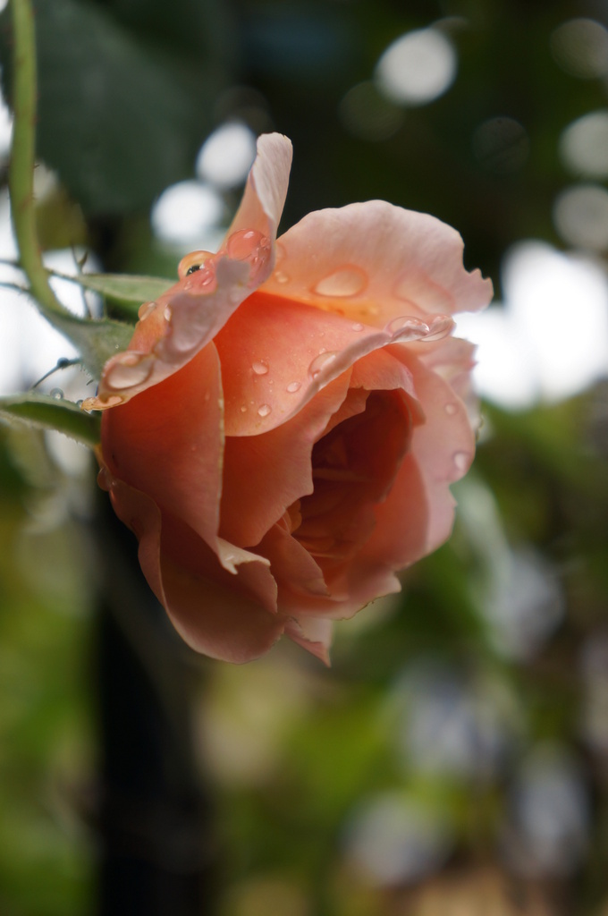 薔薇の花びらのうえで輝いている水玉と後方から輝くひかりの玉との共演が素晴らしいですね!