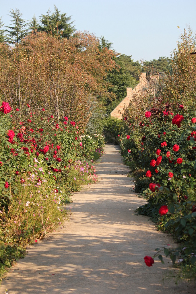 春のバラ園と違って物静かな景色ですね。赤が秋色に調和しているすてきな時間でした。