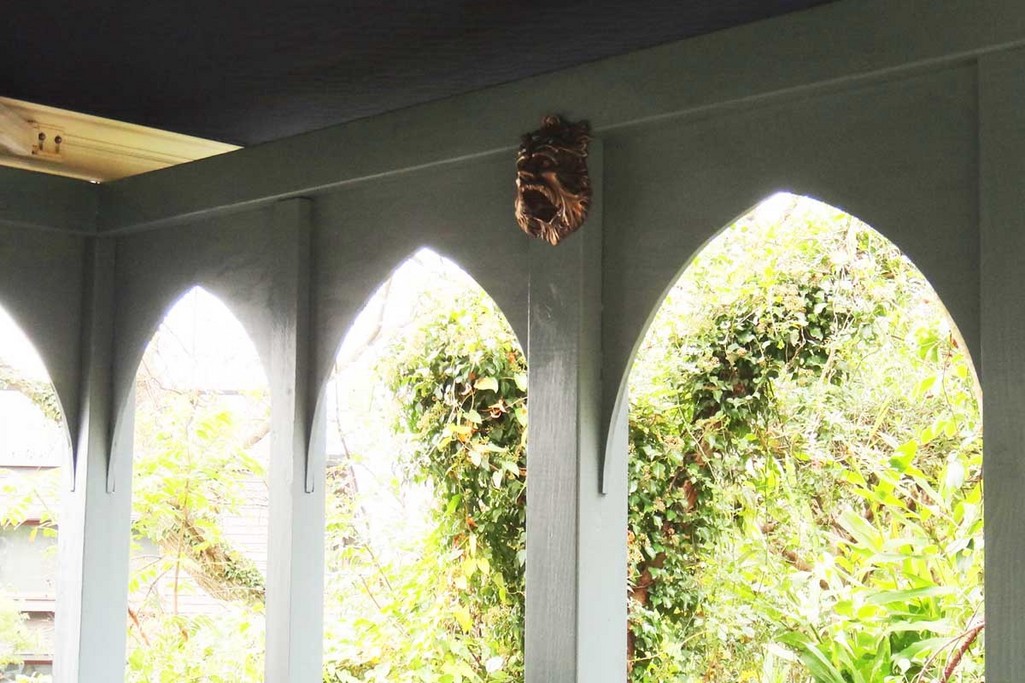 こちらも我が家に来てもらいました・・ ガゼボで目を光らせてもらっています・・