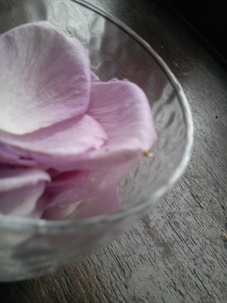 今にも散りそうなバラの花びらを集めました! 花びらから、とても良い香りがするので、こうして楽しむのもよいかと♪