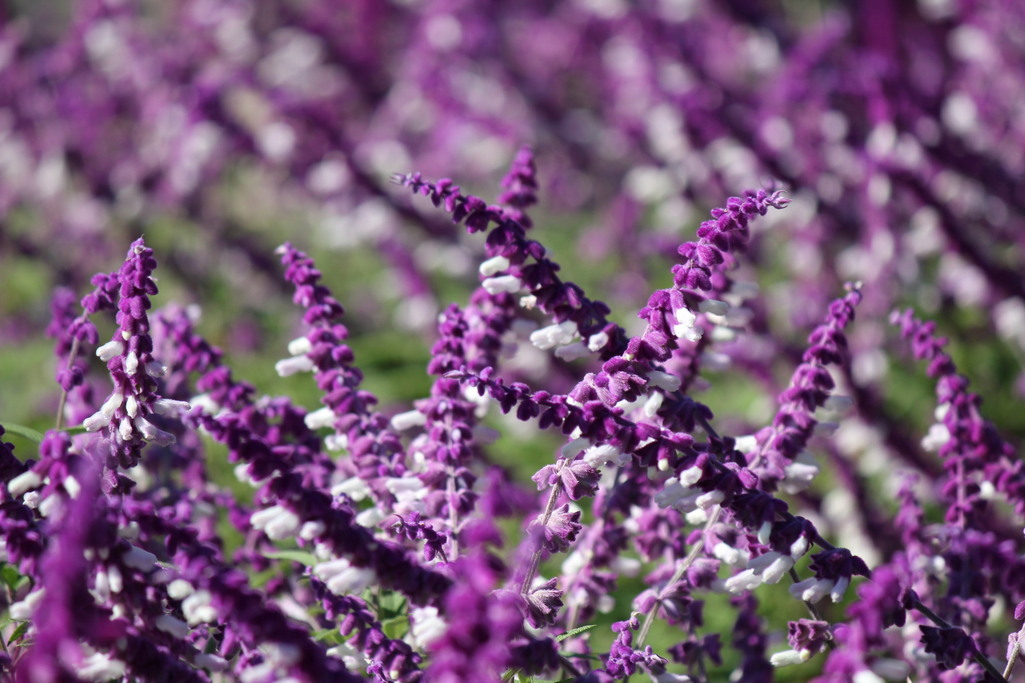 2万株のアメジストセージ モコモコふわふらの質感の花びらは子供の頃遊んだモールによく似ています。