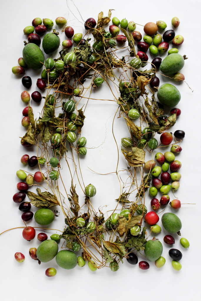 スズメウリとオリーブの実をもらったので我が家のクラブアップルとフェイジョアも足して遊びました。食べられる実はもちろん、そうでない実も眺めているだけで嬉しくなってきます。