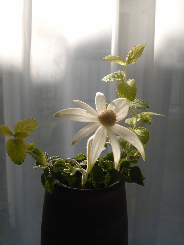 庭で茎が折れていたフランネルフラワーを救出。 室内で愉しむ。