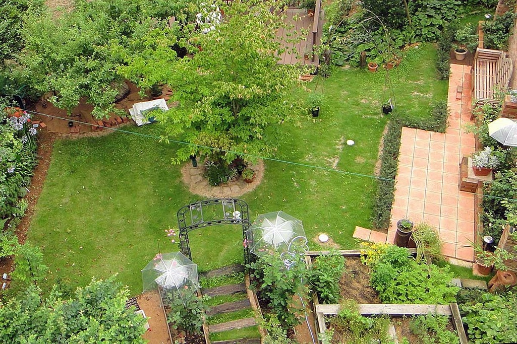 2011年7月の庭です。庭の中央に花壇を作る前の芝生の時の写真・・
