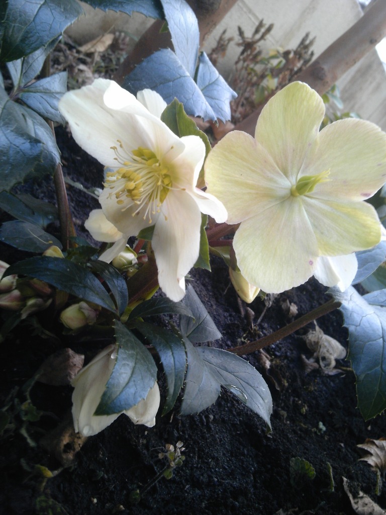 クリーム色から咲き進むと淡いグリーンに!! クリスマスローズ・ジョーカー 冬の寂しい庭が、存在感のある大きな花で、明るくなりました(^^)
