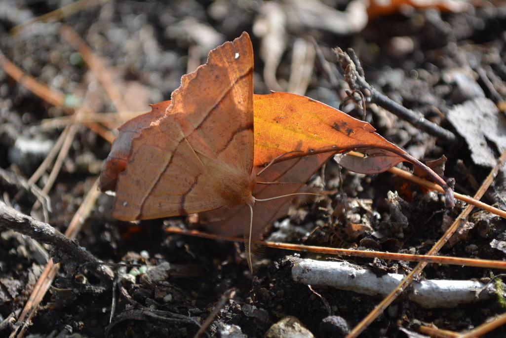 カバエダシャク。落ち葉と同色、隠れたつもり。