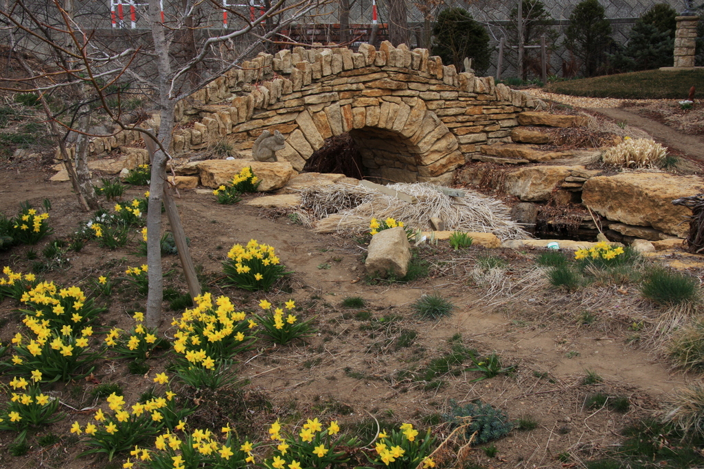 いい眺めですね。橋の石の色もいいし、水仙の群生もとてもきれい。石の動物たちもみつけました。もっと大きな写真でよく見てみたいです。