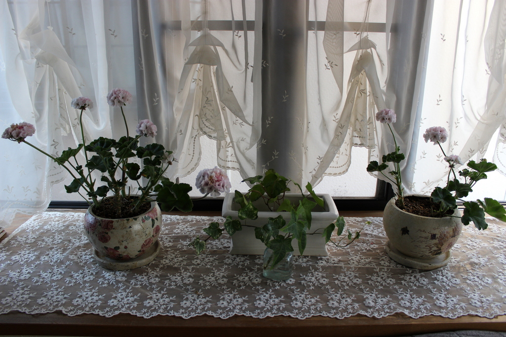 素敵な窓辺に・・可愛い鉢・・いいなあ~☆ゼラニウム私も挑戦してみます!!