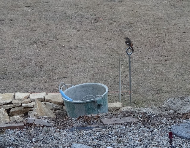 石積みを見学してる小鳥
