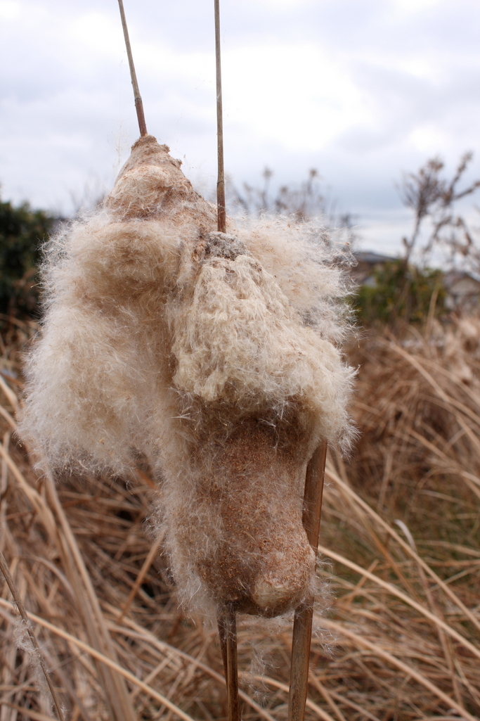 寒風吹きすさぶ中、ここだけ異様なウォーム感!家の前の空き地の蒲です。