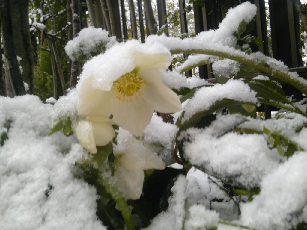スノーホワイトが雪の重みで、こんな状態に!! 今年二度目の積雪です。