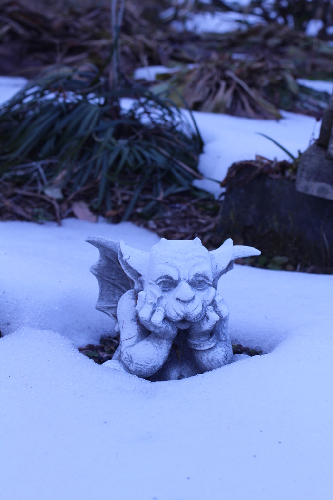 雪の中のガーゴイルも凍えてますね。