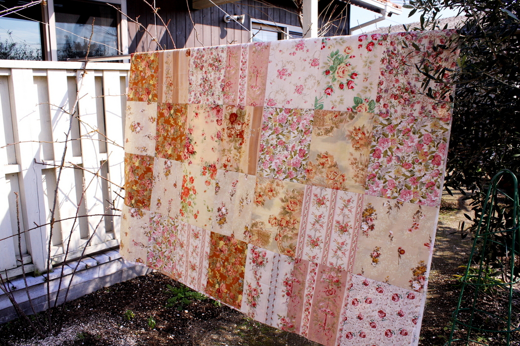 たまっていたカット・クロスを繋ぎました。シングルのベッドカバーくらいの大きさです。とりあえず繋いだだけで仕上げはまだです。