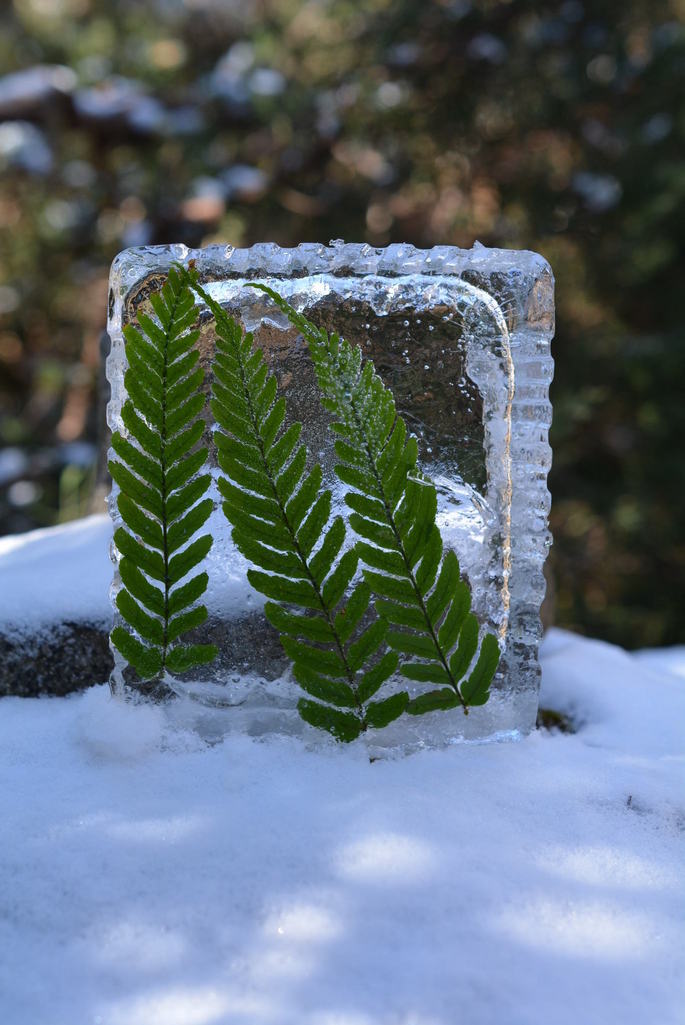 この日仙台の最低気温は-4℃ シダを閉じ込めた氷のオブジェ
