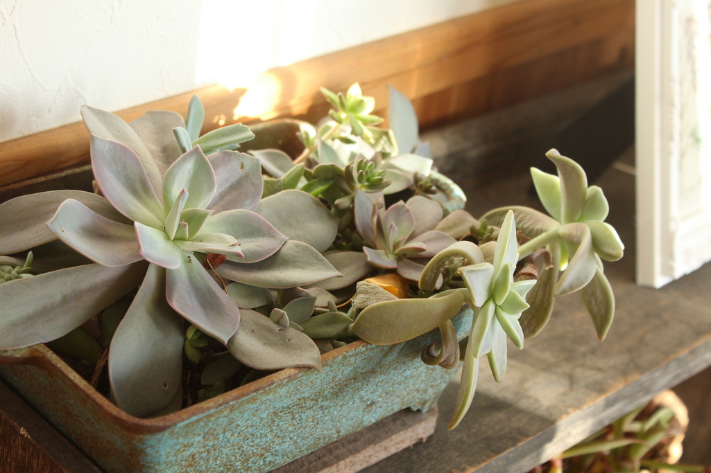 古道具と多肉植物・・