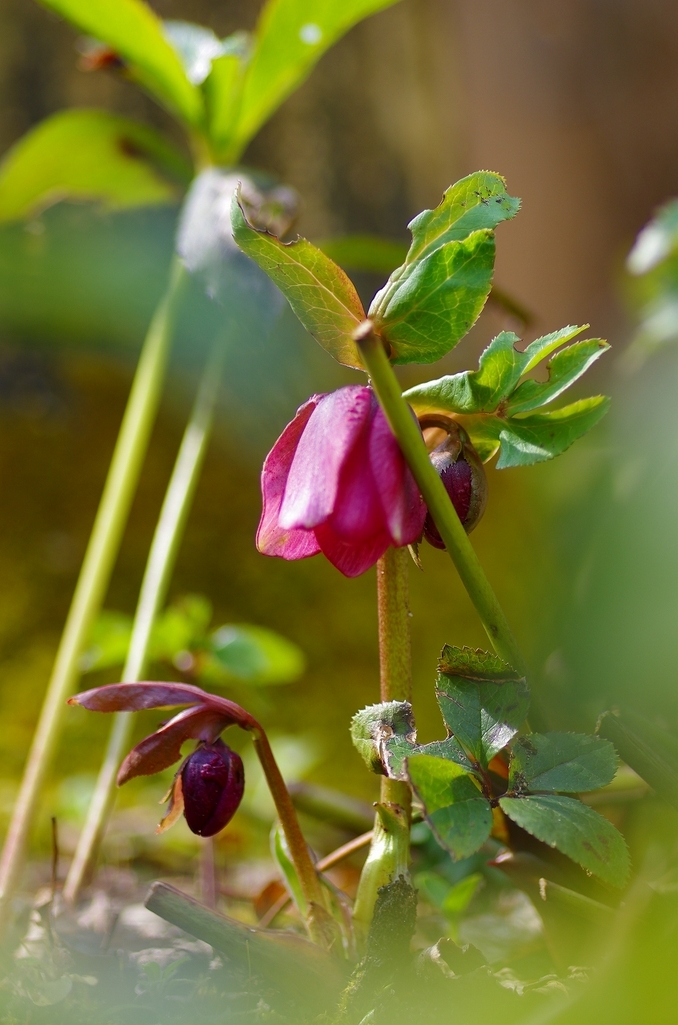 柔らかな日差しを受けた開花一番目のクリスマスローズ シーズンの始まりですね。