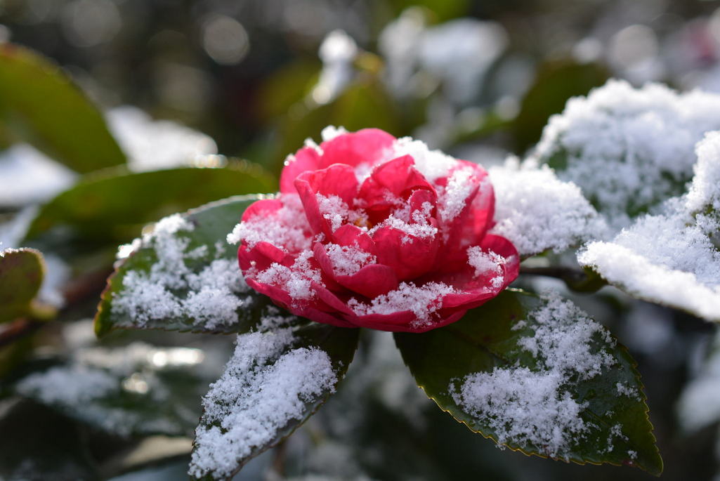 冬の庭で唯一咲いているサザンカ。