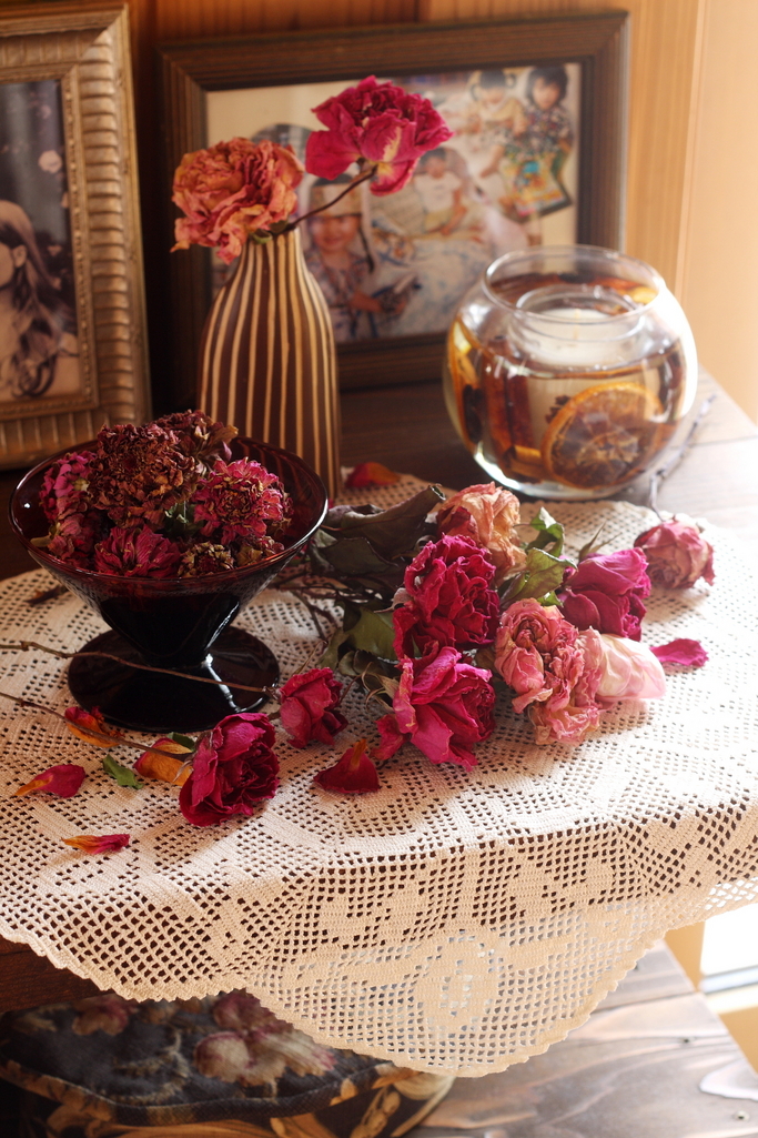 春の準備は万端ですか(*^^*)? 素敵なコーナー。ヒャクニチソウってきれいに色が残るんですね!