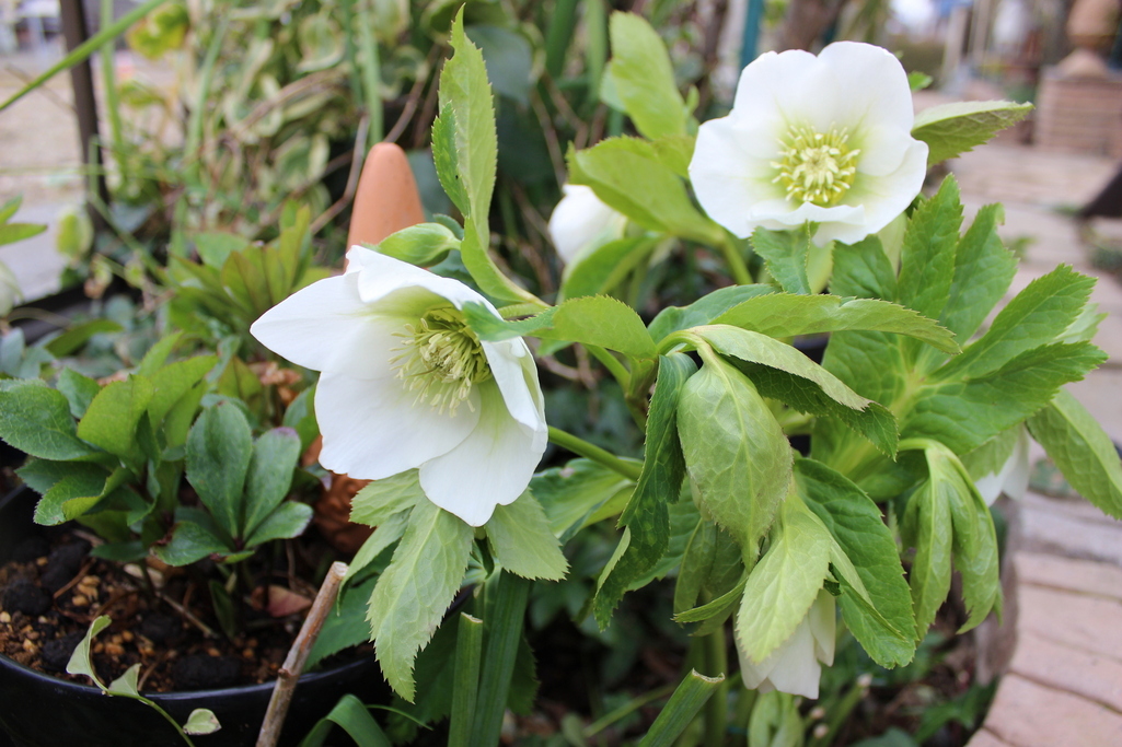 純白の大きな花を咲かせたクリスマスローズは冬の季節にお似合いです。