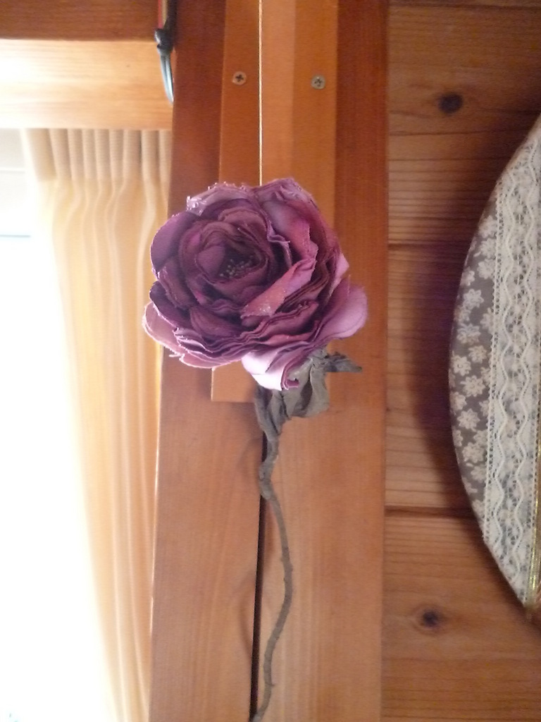 木綿の布を手染めして、幾重にも重ねて薔薇のイメージに。