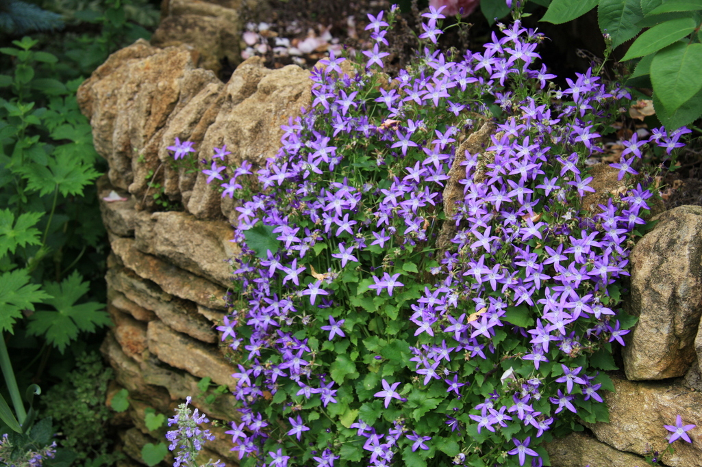 石積みにグリーンと紫が映えてとても素敵ですね~私もやってみたいです(^_-)