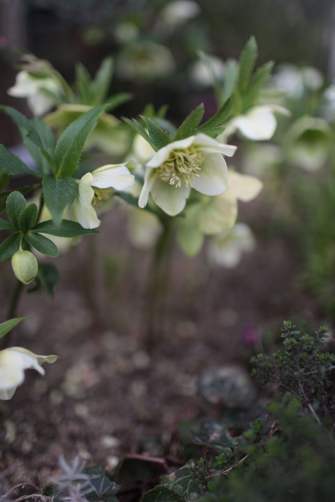 クリスマスローズがやっと咲いてお庭がにぎやかになりました。