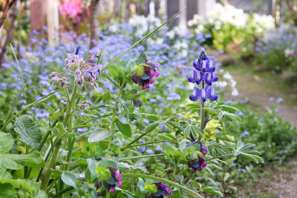 ボリジ、セリンセ 、ルピナス 個性派の三種と勿忘草はお互いを引き立てあっていると思います。