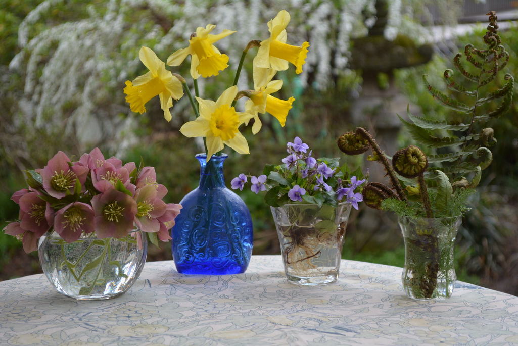 庭で摘んだ花を花瓶に。