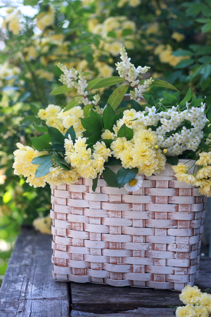黄モッコウ薔薇の前に。4月に満開を迎えたことはありません。他のバラも開花が早そうな気がします。