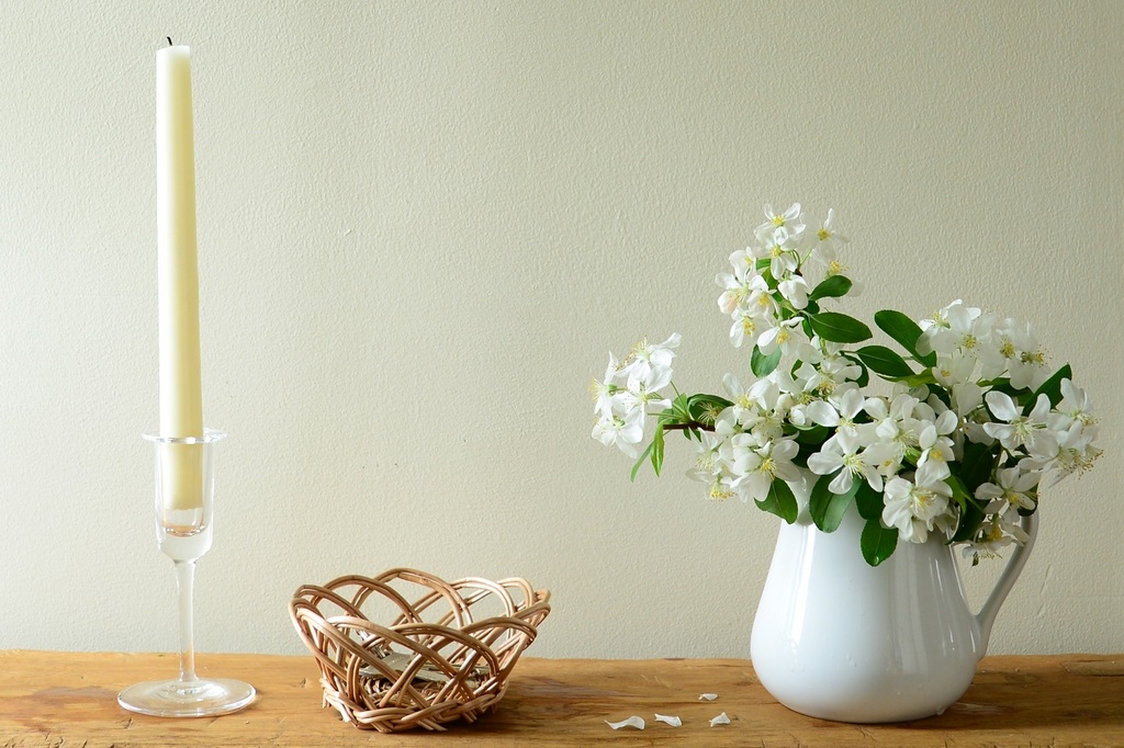 庭のクラブアップルの枝を少し、ヴァンテージのピシェに生けました。庭の季節を飾る喜びは、ガーデナーの贅沢ですね。