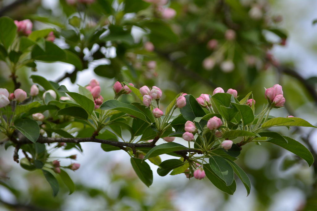 ヒメリンゴ開花前のピンク色の蕾。