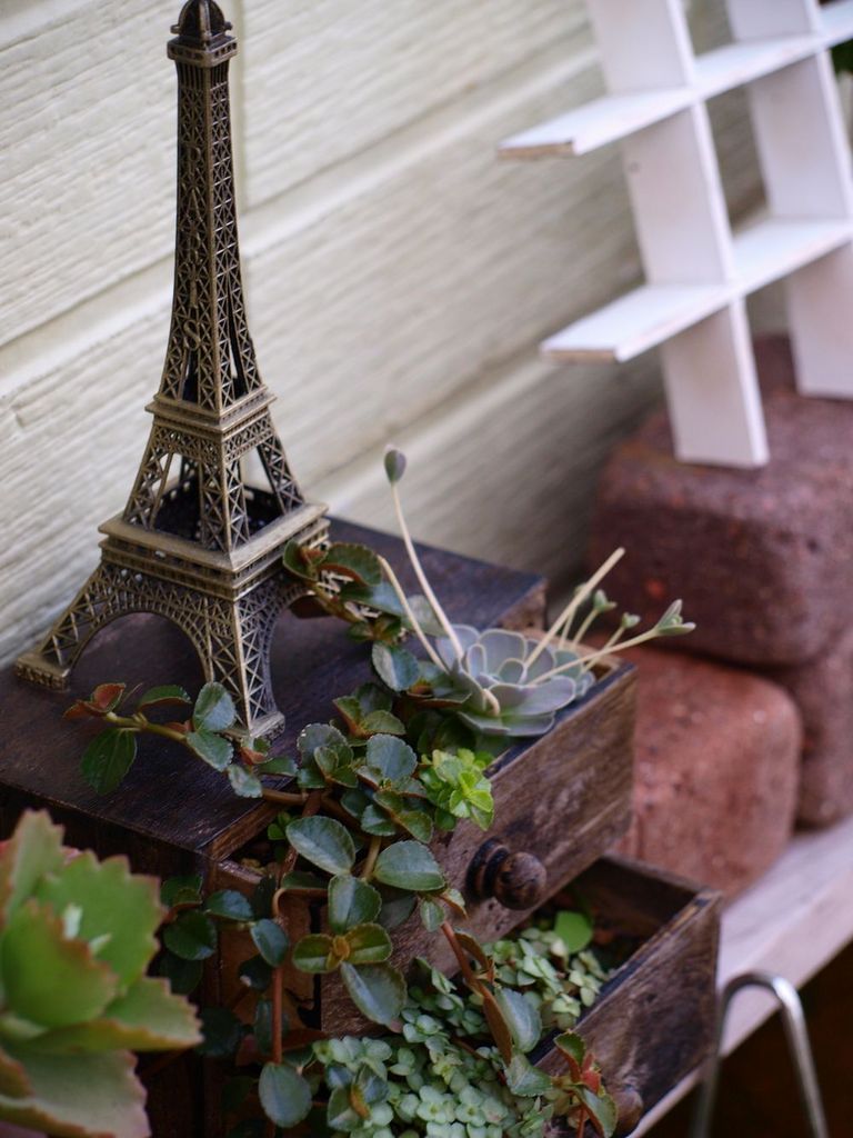 子持ち蓮華にbabyができました。100円雑貨のエッフェル塔とチェストを使ってアレンジ^^