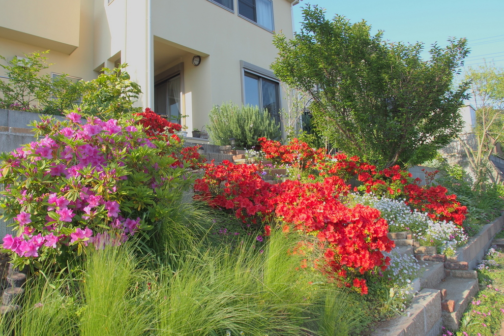 ツツジ,階段,斜面の庭,,
