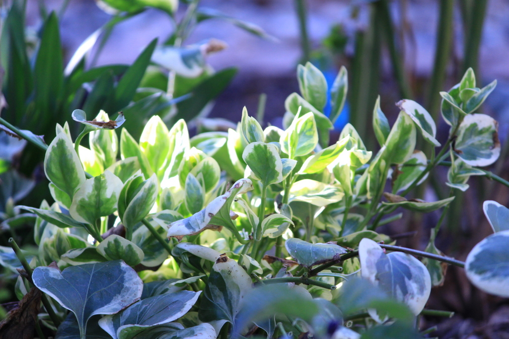 夕日を浴びるツルニチソウ