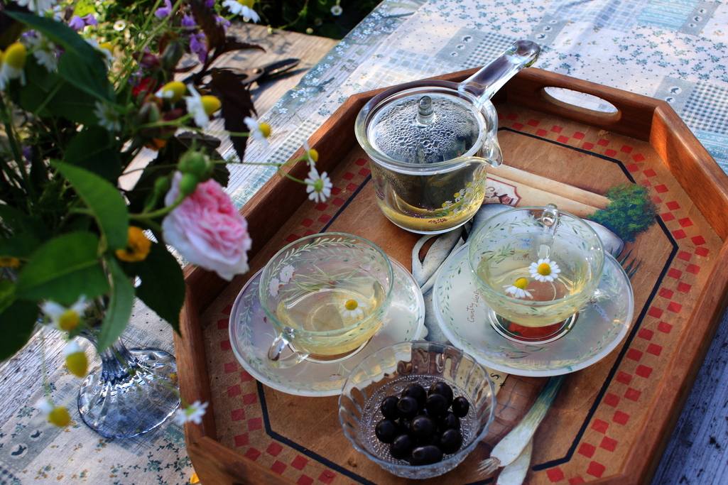 ハーブティーはドライのレモンバーベナとブルーベリーの葉っぱを乾燥させたもの。かすかに酸味があり美味です。