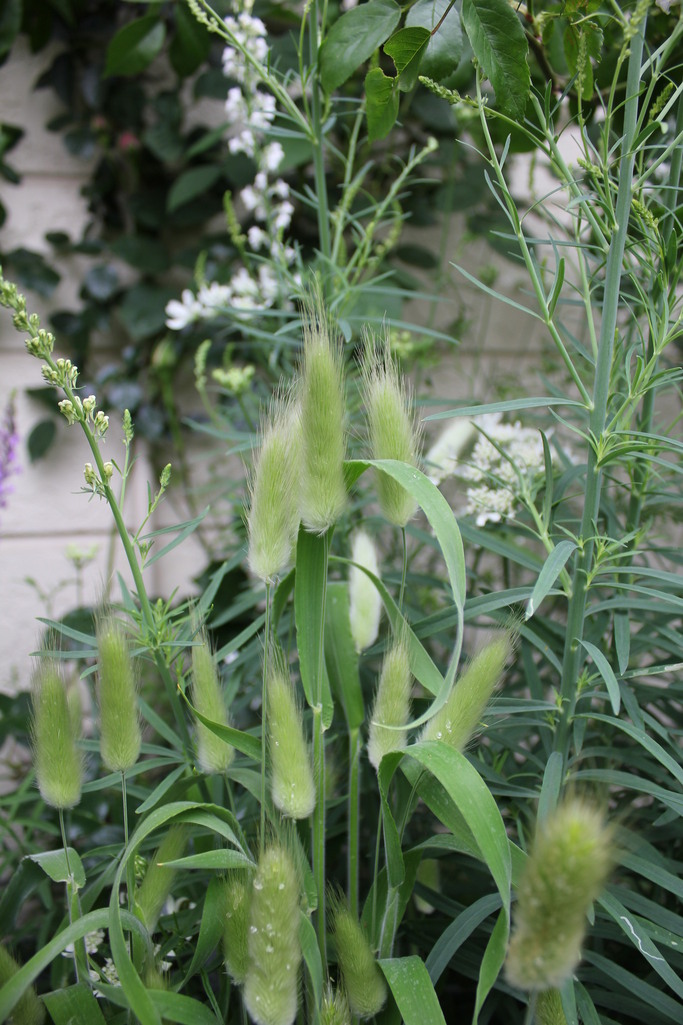 ばらを引き立ててくれる下草にラグラスを植えました。風に揺れる様が素敵です