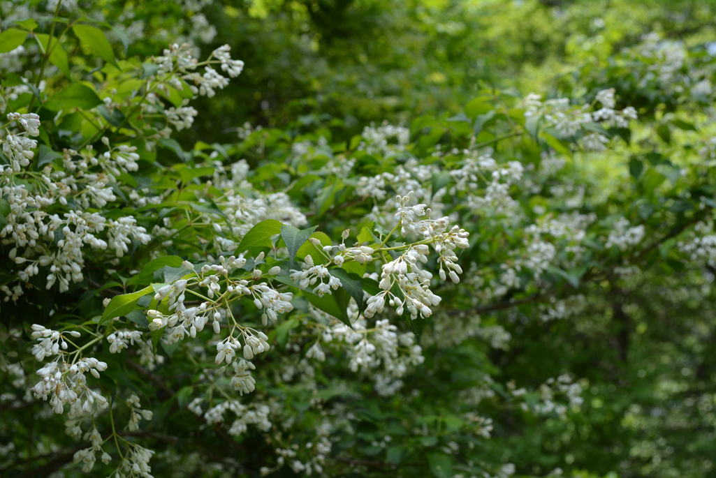 ミツバウツギ 樹に咲く白い花、どれも今が見頃です。