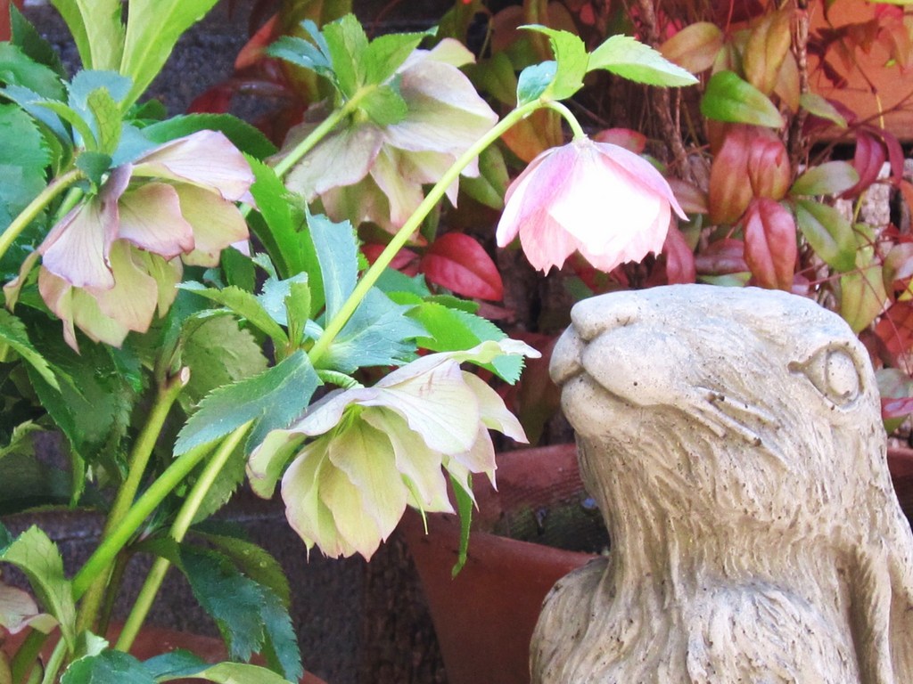 ウサギとクリスマスローズとの間隔がベストで、春の喜びが感じられる良い写真だと思います。
