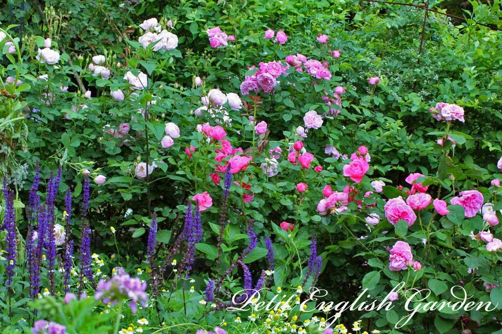 ハーブ畑越しにみえるバラの階段・・もっとも輝く季節
