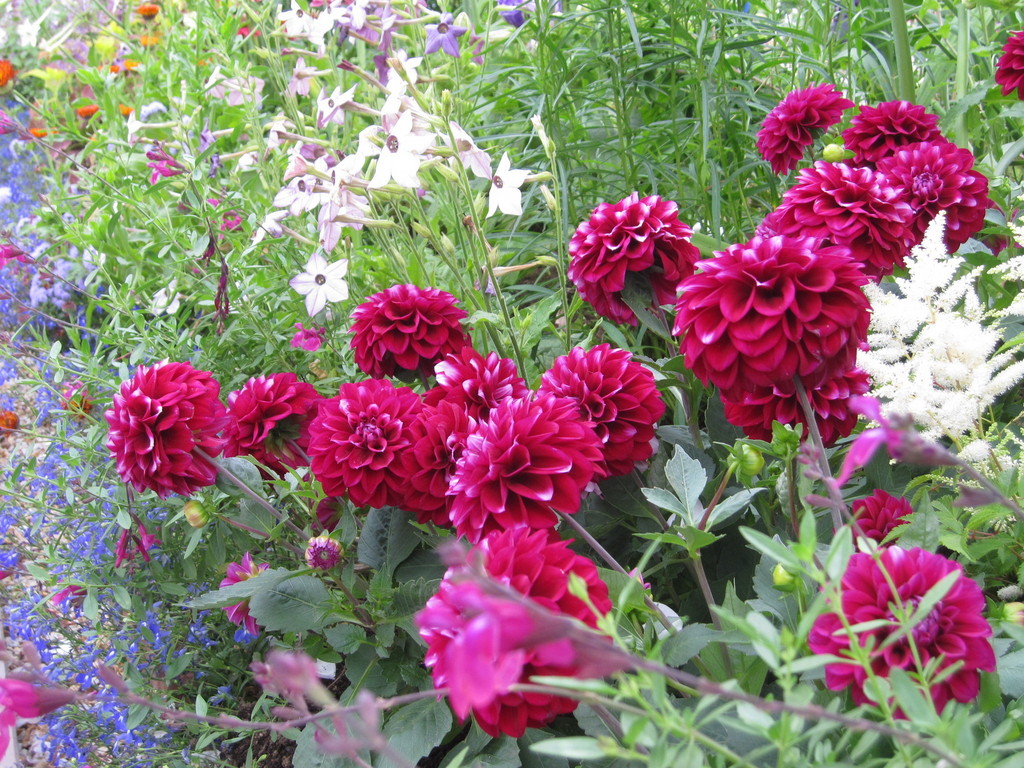 このダリアの色がとっても素敵で、まわりのニコチアナなどの花も綺麗ですよね。