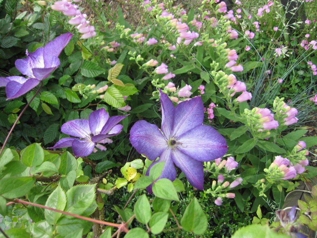 優しい色のジキタリスとクレマチスのコラボ。へえ~。