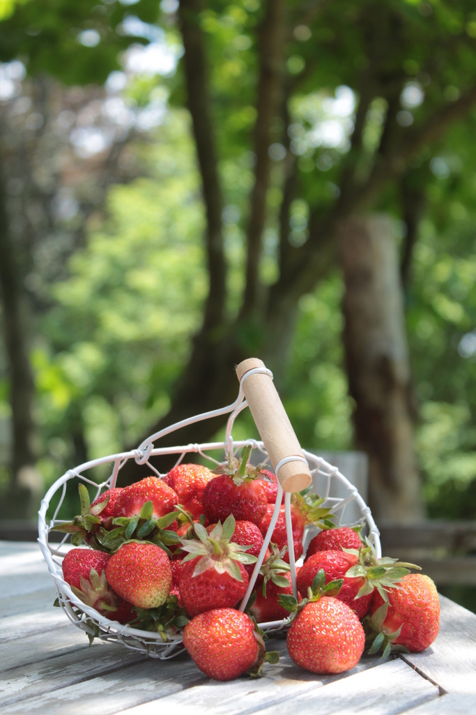 畑には今苺がいっぱい・・まいにち苺・・チョットすっぱいところがあるけど・・美味しい・・