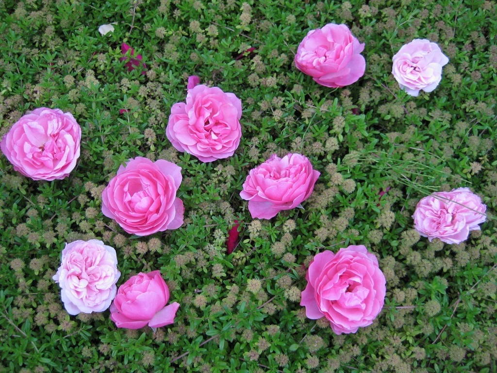 夜の強風で枝が折れ、クリーピングタイムの上に落ちていました。 処理するのはもったいないので そのまま上に並べてみました。
