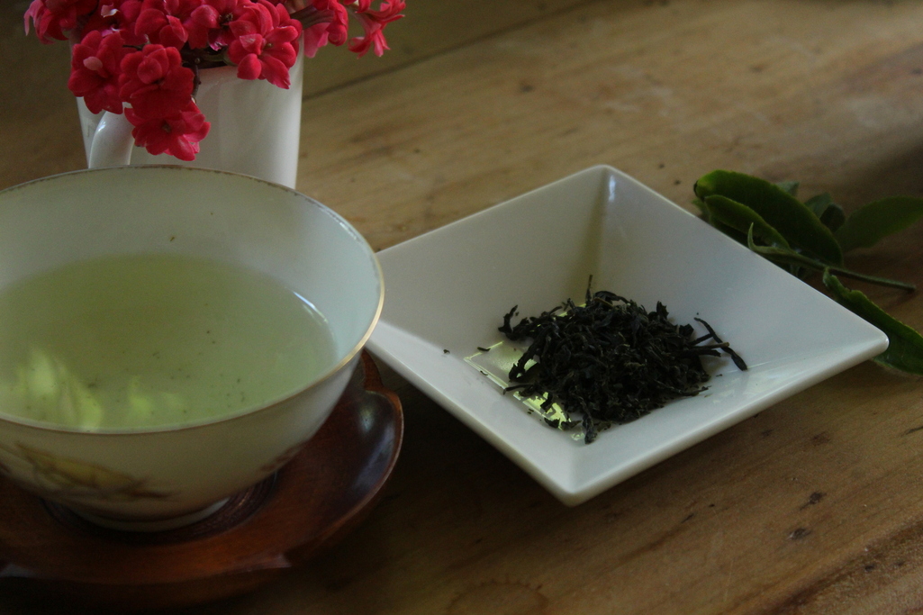 テレビで新茶づくりを見ていた5番目が・・「俺にもできる!」って言い出して・・庭に出て茶摘み・・若葉を取って・・ふかしてもんで・・干して・・とうとうできました・・美しいお茶になったけど・・後片付けが・・・