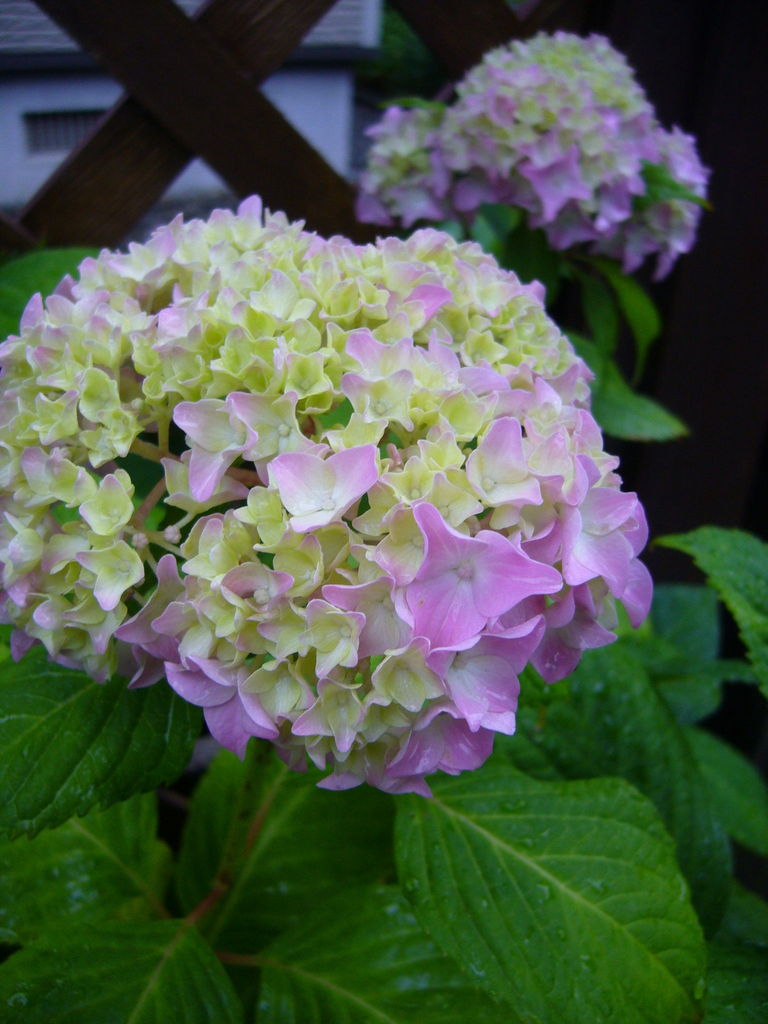 緑とピンクが可愛いアジサイ。 2年目。