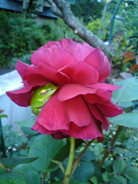 薔薇の花の中で雨宿り‥(^^♪