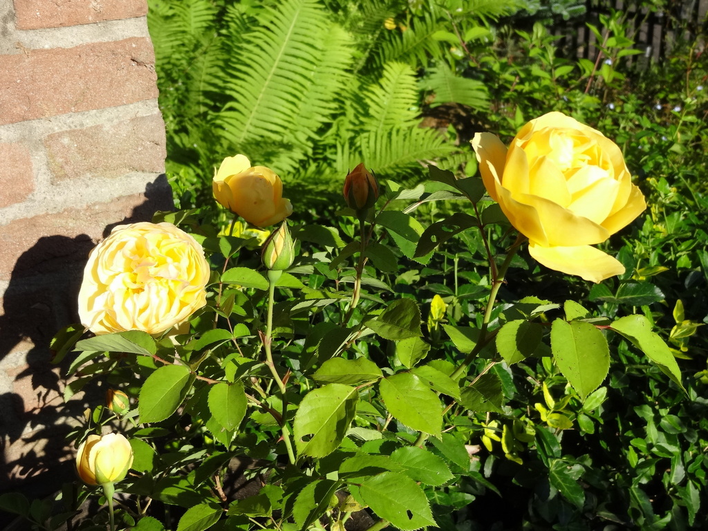 鉢植えのグラハムトーマスが開花したので、少しでも花を長く楽しめるように、涼しい玄関先に移動してみました。
