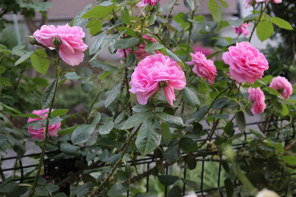 お隣さんとの境のフェンスに、誘引させて頂いているガートルードジェキル。トゲが多いけれど香りがたまらく素晴らしいとお隣さんが喜んでくれております。今年も咲いてくれてありがとう。