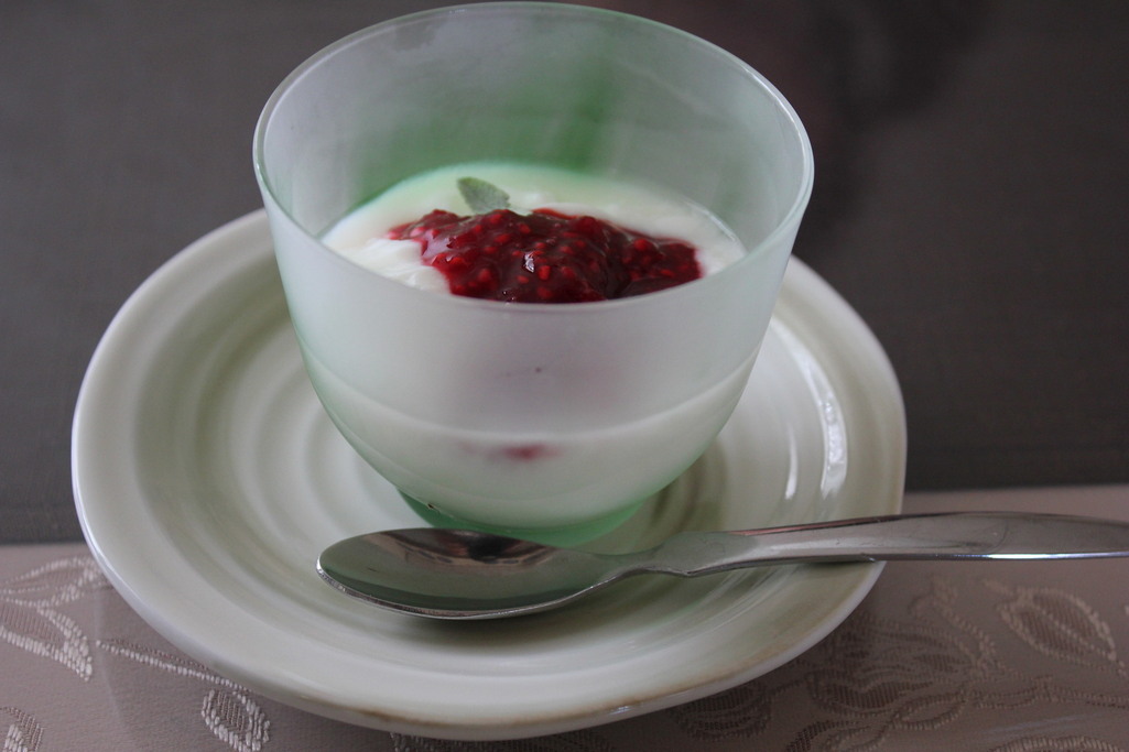 わがやで収穫したラズベリージャムで、ヨーグルトをいただきました。