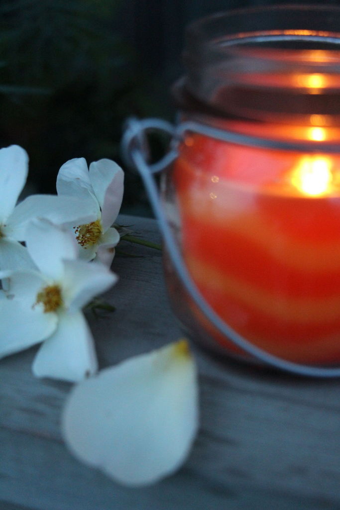 夕暮れにバラの花つみ。 昼間の騒々しい音はなく静かなガーデンで楽しむ時間。